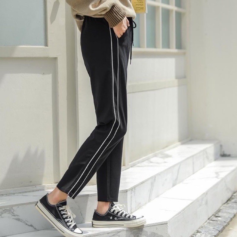 Quần Jogger Thể Thao Đen 1 Sọc Trắng Co Giãn Mát Mẻ
